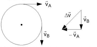 Uma partícula descreve movimento circular passando pelos pontos A e B com velocidades e