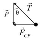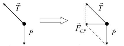 As forças atuantes no corpo são o peso e a tração do fio. A resultante pode ser calculada formando um polígono e aplicando a tangente: