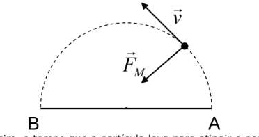 Assim, o tempo sque a partícula leva para chetar até B é o tempo que ela demora para percorrer a semicircunferência: