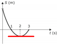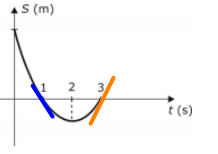 No instante 2 s, a reta tangente à curva assume inclinação horizontal, isso nos indica que a velocidade nesse instante é nula. Alternativa C está correta.