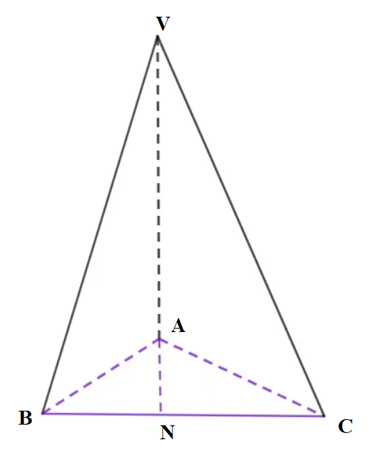 1) Para descobrir a distância de A até o plano BCV, precisamos primeiramente das seguintes medidas: AN, NV e VA.