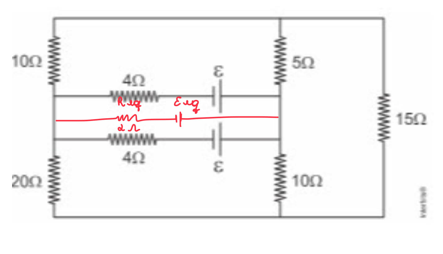 Isso considerando que os dois geradores e as duas resistências têm os mesmos valores.