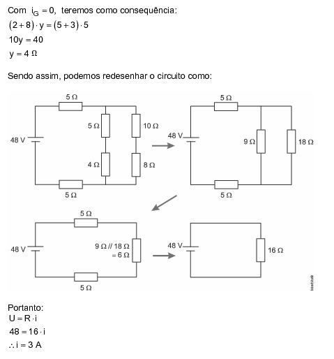 No circuito a seguir, o galvanômetro não acusa passagem de corrente. Determine o valor da corrente elétrica i no circuito.