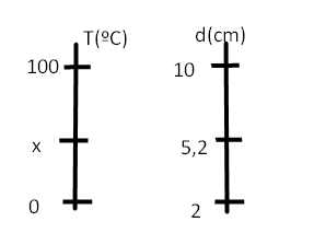Um cientista dispõe de um termômetro de mercúrio com a escala totalmente ilegível. Desejando medir a temperatura de uma substância X com o termômetro, ele adotou o seguinte procedimento: sob a condição de pressão normal (1 atm), mergulhou o termômetro na água em ebulição e observou que a coluna de mercúrio atingiu o comprimento de 10 cm; posteriormente, colocando o termômetro em gelo fundente, o comprimento da coluna de mercúrio passou a ser de 2 cm. Após esse procedimento, ele colocou o termômetro em contato com a substância X e encontrou o comprimento de 5,2 cm para a coluna de mercúrio. Baseado nessas informações, a temperatura da substância X medida pelo cientista, em graus Celsius, é de