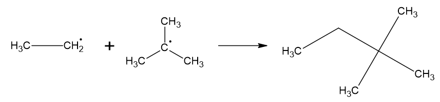 A união das estruturas dos radicais orgânicos etil e t-butil (ou terc-butil) gera um composto orgânico cuja estrutura é nomeada por 2-metilhexano.