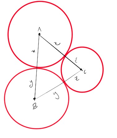 Admitindo x,y e z os raios das circunferências, temos que: