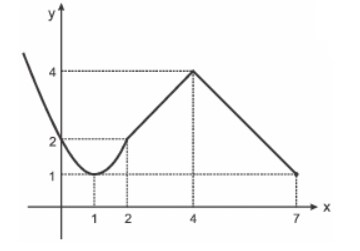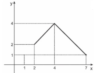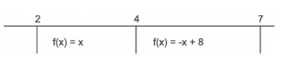 Construindo o gráfico da função f(x) = 4 - |4-x|, para 2 leq x leq 7