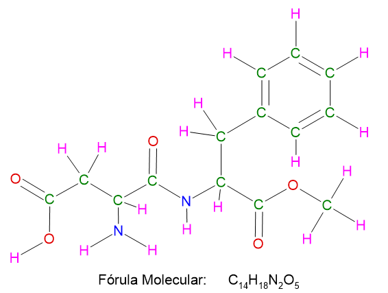 A fórmula molecular e as funções orgânicas que podem ser reconhecidas na estrutura do Aspartame são: