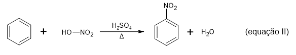 A segunda reação é a nitração do benzeno. O produto formado é o nitrobenzeno