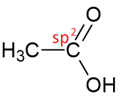 Correto. A hibridização do carbono que possui ligação dupla com o oxigênio é sp2. A hibridização do carbono terminal é sp3.