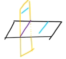 Observe que as retas azuis não são perpendiculares aos planos que não as contém.