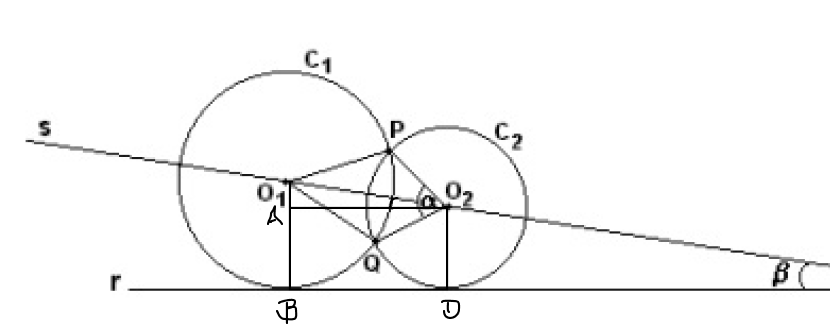 Precisamos primeiro encontrar o tamanho da reta O1O2. Podemos usar o triângulo AO1O2 para isso. Encontrando o valor de AO1: