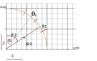b) Estime o valor da corrente I1, em ampères, quando a agulha indicar a direção , representada abaixo. Utilize, para isso, uma construção gráfica.