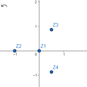 \ z_{2} = -1 = (-1,0) \ \ z_{3} = frac{1}{2 } + frac{sqrt{3}}{2}i = (frac{1}{2} , frac{sqrt{3}}{2}) \ \ z_{4} = frac{1}{2}- frac{sqrt{3}}{2} i = (frac{1}{2}, frac{- sqrt{3}}{2})