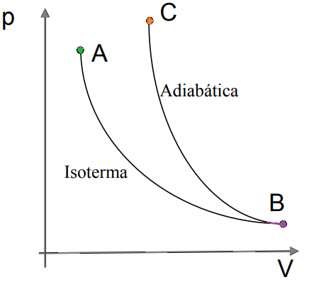 Note que o ponto C não está localizado sobre a isoterma. Dessa forma, se fosse realizada uma compressão isotérmica, não seria possível voltar à temperatura inicial.