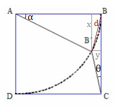 (IME - 2007/2008) Em um quadrado ABCD o segmento AB ' , com comprimento igual ao lado do quadrado, descreve um arco de círculo, conforme indicado na figura. Determine o ângulo' correspondente à posição em que a razão entre o comprimento do segmento B’C e o lado do quadrado vale