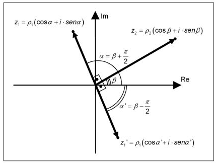 Obs.: números complexos ortogonais são aqueles cujas representações gráficas são perpendiculares entre si e overline{z} é o número complexo conjugado de z.