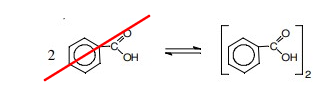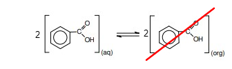 Na fase orgânica, o ácido benzoico não se dissocia, mas sofre o seguinte processo de dimerização parcial (Kd = 2):