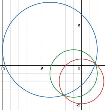 O que queremos é a curva externa às circunferências azul e verde, mas pertencentes a vermelha, abertas nas interseções.