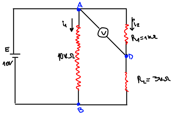 A leitura do voltímetro nos terminais A e D: