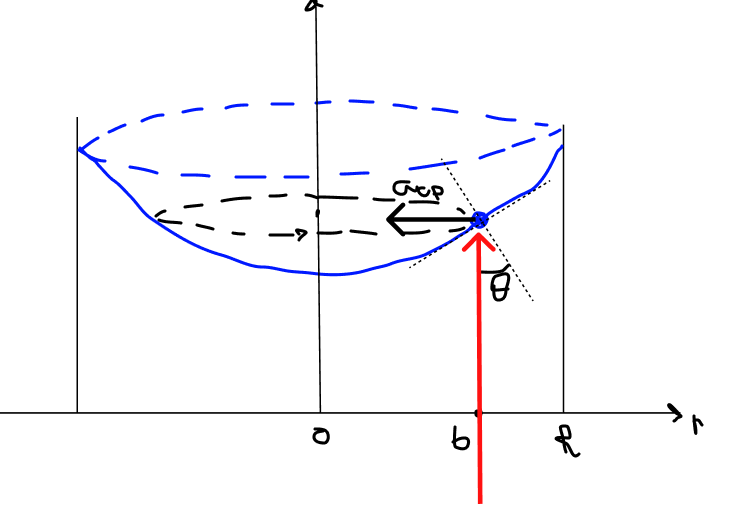 Imaginemos uma partícula de água sob efeito de aceleração centrípeta. Utilizando os princípios de referencial não inercial, podemos escrever: