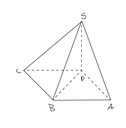 [IME - 2013/2014 - 1a fase] Seja SABCD uma pirâmide, cuja base é um quadrilátero convexo ABCD. A aresta SD é a altura da pirâmide. Sabe-se que =2 . O volume da pirâmide é