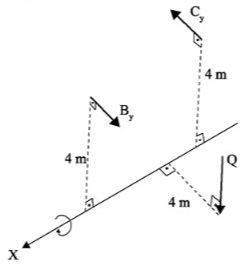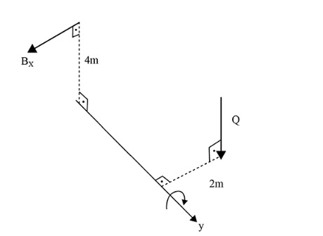 sum { 	au_{y}} = 0 	herefore B_{x} cdot 4 = 2 cdot Q Rightarrow oxed {B_{x} = 30  kN}