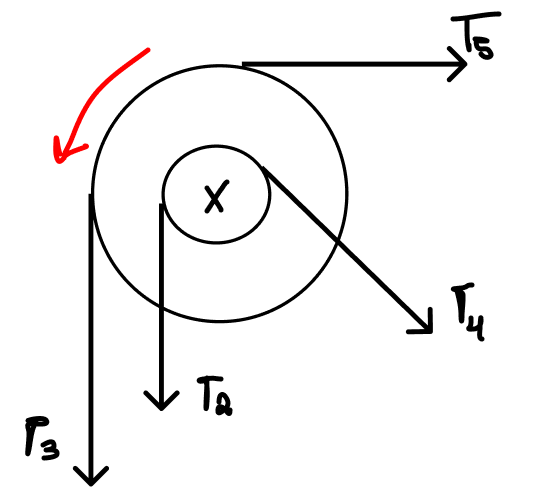 Polias: agora, as polias giram no sentido anti-horário com a mesma aceleração angular: