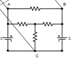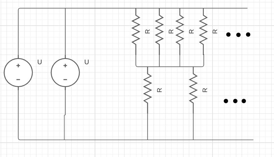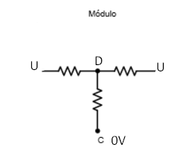 Perceba que se estabelecermos o ponto C como um nó Terra, o potencial do ponto A e o potencial do ponto B valerão U. Sendo assim, o resistor superior em todos os módulos estarão em curto circuito.