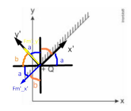Podemos então inferir que Fm'y = |Fm'y'|cos(a) - |Fm'x'|cos(b) e Fm'x = -|Fm'x'|cos(a) - |Fm'y'|cos(b).
