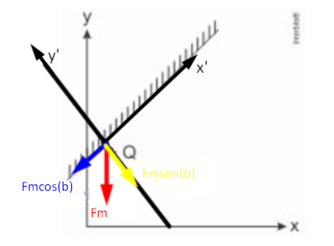 Observe que foi feita a decomposição do vetor Fm nos eixos y' e x'