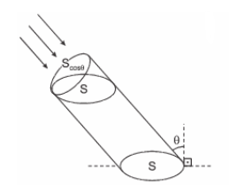 Sendo S a área da superfície atingida por um feixe de fótons, podemos considerar que num intervalo de tempo , a quantidade de fótons que colidem com a superfície estará contida num cilindro de área da base