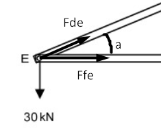 Se o nó está equilibrado, na direção vertical temos para cima a componente Fdesen(a), e a carga de 30kN para baixo.