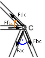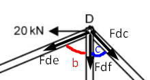 Agora analisaremos o nó D, supondo as barras DF e DC tracionadas: