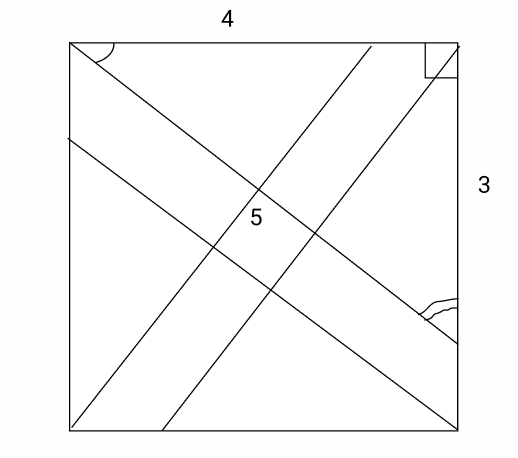 Observe que na figura formada podemos encontrar vários triângulos retângulos pitagóricos de lados proporcionais a 3,4,5.
