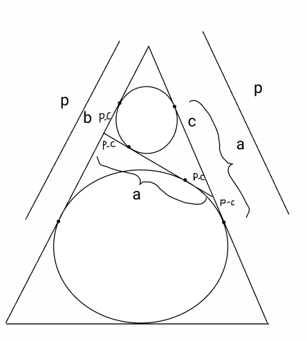 Pela relação das retas tangentes e dos semi-perímetros, temos que:
