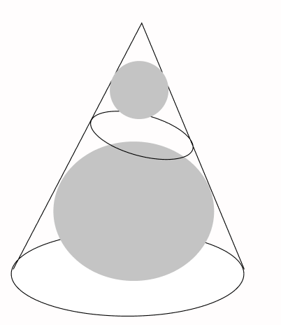 , conforme a figura abaixo. Um plano secante ao cone é traçado de forma que este seja tangente às duas esferas. Determine em termos de