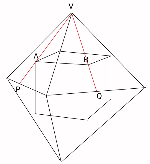 Note que os vértices A e B são baricentros das faces do octaedro, e P e Q são pontos médios das arestas do octaedro.