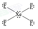 Segundo o enunciado, a reação de Xe com F2 levou a formação de um composto apolar com 14 pares de elétrons não ligantes, portanto, o composto formado foi XeF4. Essa reação pode ser representada por: