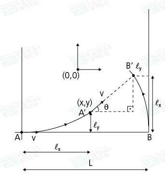 Perceba que a partícula A percorre a curva do ponto A até o A' enquanto a partícula B percorre a trajetória B até B'. Essas trajetórias são simétricas, de forma que: