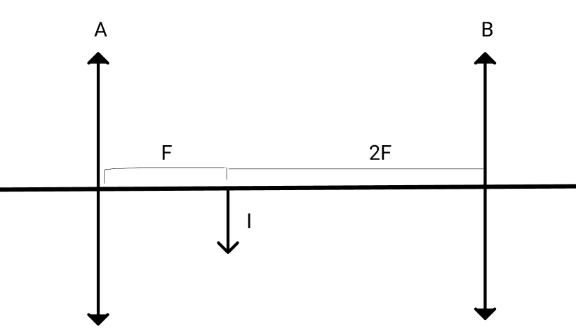 A imagem I torna-se o objeto a ser refratado na segunda lente. A unica maneira da imagem formada pela segunda lente ser virtual, é a imagem i estar entre o foco dessa lente e seu vértice. Dessa forma, temos que a distância entre as duas lentes pode ser no máximo 3f: