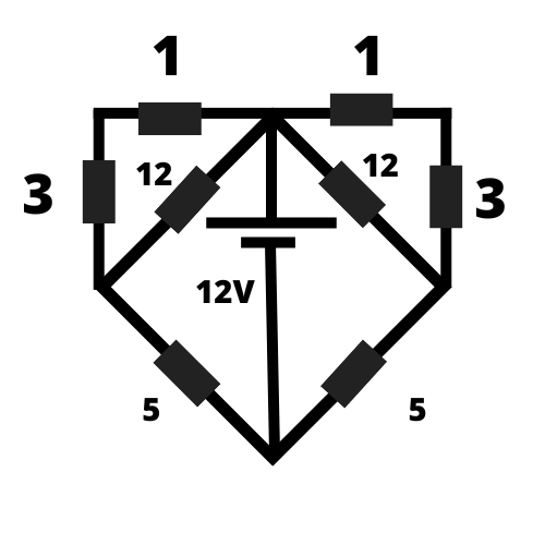 O circuito acima é alimentado por uma fonte de 12 V. Todas os valores de resistências apresentados encontram-se em . A potência, em W, fornecida pela fonte é:
