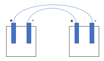 Temos uma associação de pilhas em série: