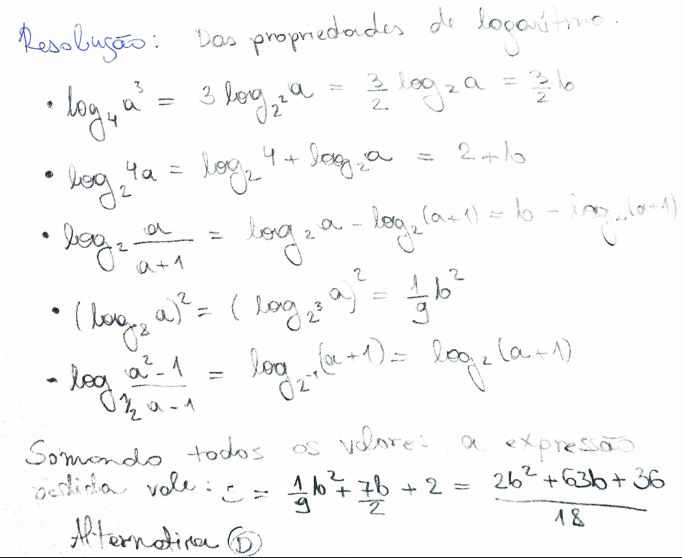 Seja a  epsilon mathbb{R}, com a>1. Se b=log2a , então o valor de: log4a3 + log24a + log2(a/(a+1)) + (log8a)2 -log1/2((a2-1)/(a-1)) vale: