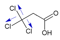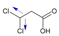 O efeito indutivo retirador, ou seja, que retira densidade eletrônica, aumenta a carga parcial positiva no oxigênio ligado ao hidrogênio ácido, o que enfraquece a ligação O-H. Quanto mais fraca for a ligação, mais ácido é o composto, já que é mais fácil perder H+. Os principais grupos retiradores são os halogênios e o grupo nitro.