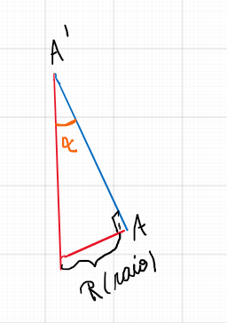 , mas A'O= AO+AA'. Vamos achar então a medida do seguimento AA', que coloquei em azul, mas olhando para o desenho em 3 dimensões: