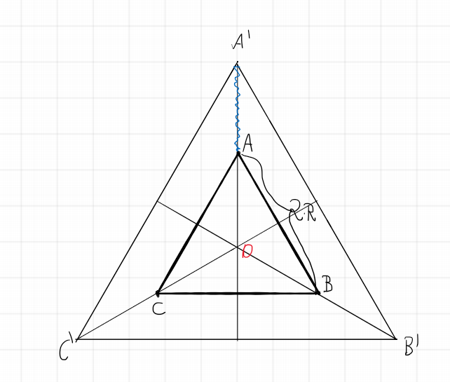 , que calculamos usando relações conhecidas no triângulo equilátero ABC. Usando a mesma relaçã opara o triângulo A'B'C', que tem aresta a, temos: