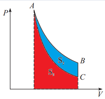 No processo CA, há um trabalho de 40J sendo realizado sobre o sistema. Assim, a área representada por S1 é 40.