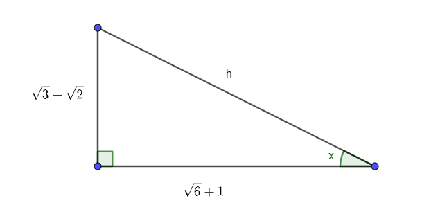 Com esse valor da tangente encontrado, conseguimos construir o triângulo retângulo seguinte:
