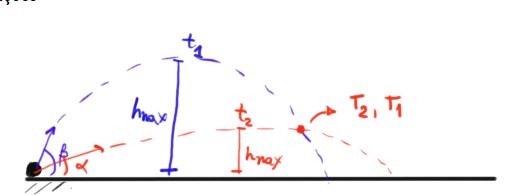 t_1T_1 +t_2T_2 = frac{2V^2}{g^2}cdot(frac{tgalpha + tgeta}{(tgalpha + tg(eta))})